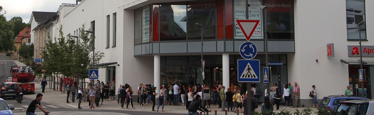 Autor: redMitarbeiter und Besucher drängten sich vor der Einkaufspassage, die Feuerwehr war mit drei Fahrzeugen vor Ort. Am Ende hieß es: Fehlalarm, die Brandmeldeanlage des Komplexes hatte aus unerfindlichen Gründen ausgelöst, war von der Berufsfeuerwehr zu erfahren.