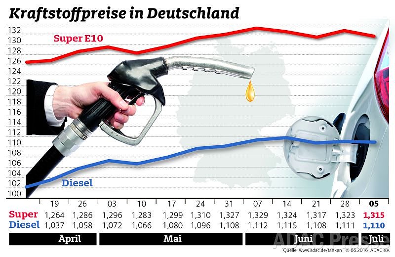 Die Kraftstoffpreise in Deutschland sind im Vergleich zur vergangenen Woche leicht gesunken. Ein Liter Super E10 kostet nach Angaben des ADAC derzeit im bundesweiten Schnitt 1,315 Euro, das sind 0,8 Cent weniger. Kaum Veränderungen hingegen beim Dieselpreis: Ein Liter verbilligte sich um 0,1 Cent auf 1,110 Euro...