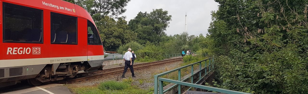 Kurz nach 10.45 Uhr näherte sich der Triebwagen dem Bahnübergang. Hier bedeutete ein Mann dem Lokführer, er möge halten. Der jedoch war bereits über Polizei und Bundespolizei informiert, dass sich eine hilflose Person auf dem Gleisen in Richtung Niedersachswerfen befindet.
