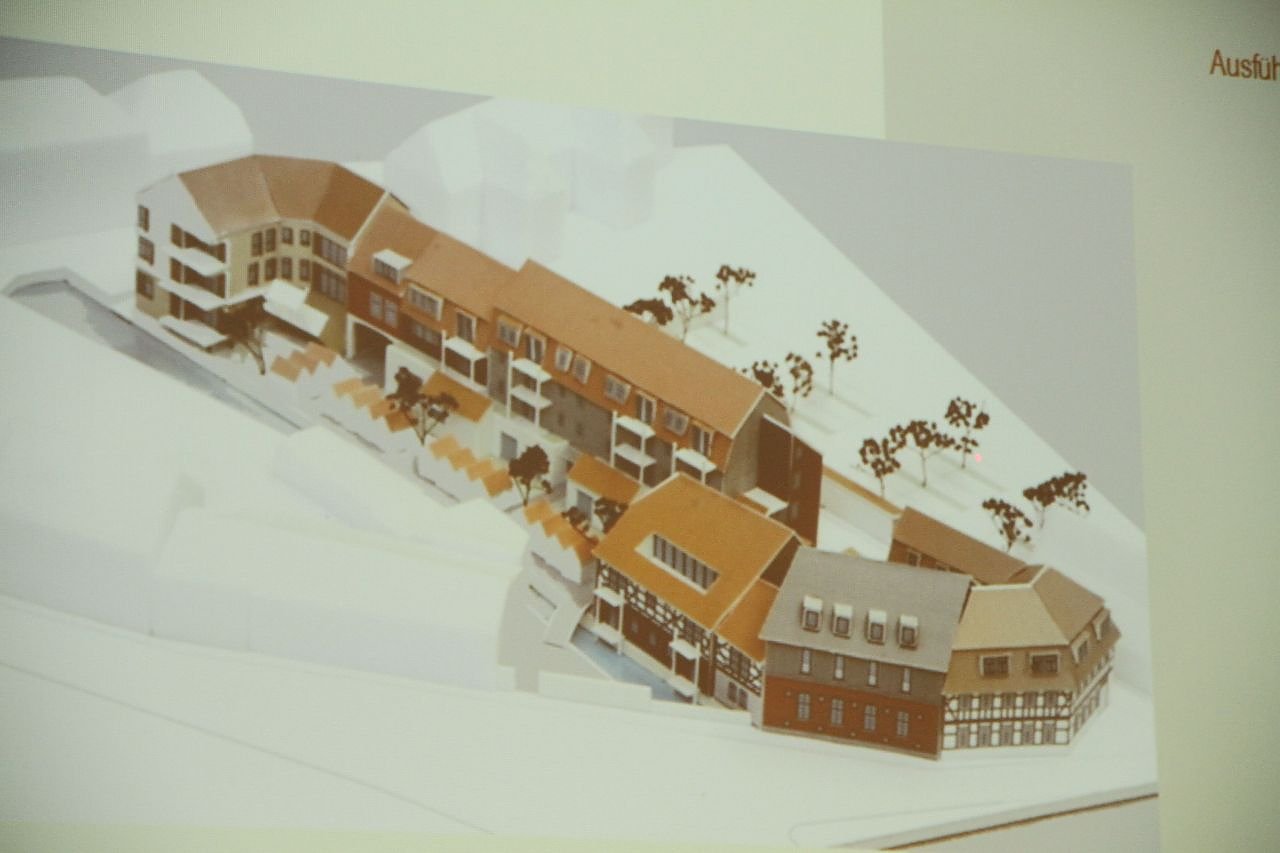 Von der historischen Bausubstanz bleibt da manchmal nicht mehr als die Fassade, aber immerhin. Denn nicht selten lässt sich ein kompletter Abriss nicht vermeiden. So wird das Gebäude Altendorf 30 weichen müssen, der Schaden an der Bausubstanz war einfach zu groß, erklären die Architekten am Abend. Die SWG musste in der Schärfgasse ein Gebäude abreißen und auch aus der geplanten Öffnung des Mühlgrabens wird vorläufig nichts. Um den geschlossenen Wasserkreislauf zu realisieren hätte man komplizierte Filter- und Pumpsysteme einbauen müssen, die Pläne seien aber nicht gänzlich ad acta gelegt.