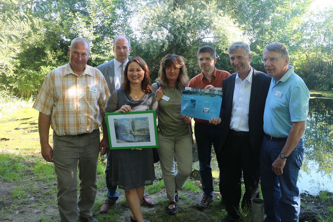 Autor: redBei allerbestem Sommerwetter traf man sich in großer Runde am Vormittag an der Salzaquelle. Hier entsteht unter der Schirmherrschaft des Naturparks Südharz zur Zeit ein Wander- und Erlebnisweg, der auf gut einem Kilometer und acht neu gestalteten Informationstafeln über die größte Karstquelle im Osten des Landes aufklären soll.
