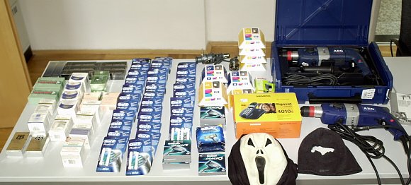 Zwei Masken befanden sich in der sich außerdem in der Wohnung der Diebe. Vielleicht wurden sie im Zusammenhang mit einem Verbrechen verwendet. Die beiden Ladendiebe streiten übrigens den Besitz der auf dem Foto gezeigten Gegenstände ab. Nun ist es wichtig, daß sich ein Geschädigter findet. Werden die Diebe rechtmäßig verurteilt, dann droht ihnen eine Geldstrafe oder bis zu fünf Jahren Haft.