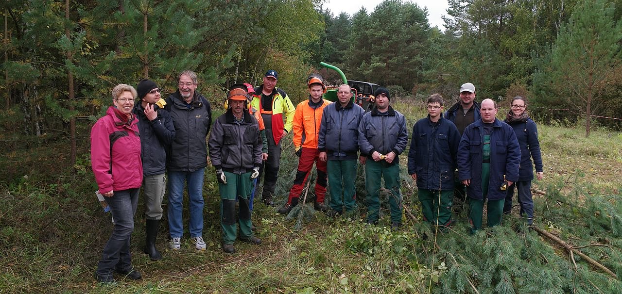 Fleißige Mitarbeiter der Nordthüringer Lebenshilfe haben heute Vormittag im Grünen Band bei Ellrich einen einstigen Halbtrockenrasen wieder zum Leben erweckt. Und das mit Motorsäge und Häcksler...