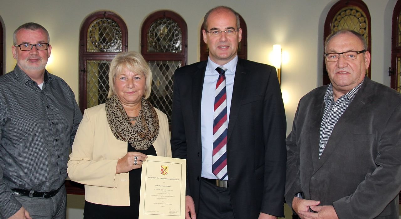 Autor: nnzDer Nordhäuser Kreistag hatte Hannelore Haase in seiner Sitzung im September zur neuen 2. Beigeordneten gewählt. In ihre Zuständigkeit wird sie die Bereiche Ordnung, Bau, Umwelt und Veterinärwesen übernehmen.