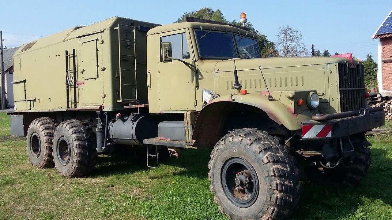 Nach langen Recherchen, Planungen und Berechnungen, rollte nun heute ein KrAZ-255 B in seinen Werkstattbereich. Dieser gewaltige ehemals russische LKW (6x6), welcher in seinen technischen Parametern nur noch von dem tschechischen Tatra 813 (8x8), genannt auch Kolos bis zur Wendezeit übertroffen wurde, diente einst als mobile Radarstation zur gegnerischen Luftabwehr. Die Außenmaße dieses gewaltigen LKW von 8,5 m in der Länge, von etwas über 2,7 m in der Breite und über 3,1 m in der Höhe mit Kofferaufbau, sind für den normalen Betrachter doch sehr gewöhnungsbedürftig.