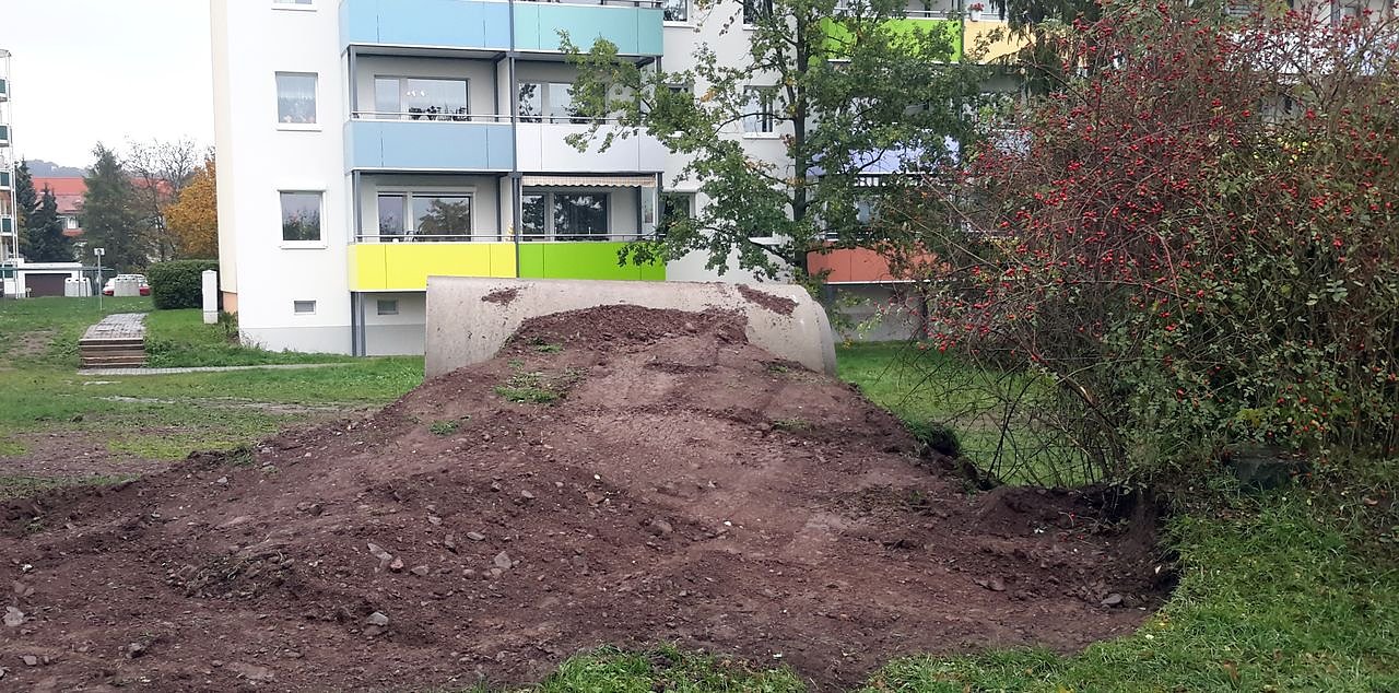Erdhügel direkt vor den neuen Balkonen (Foto: privat)