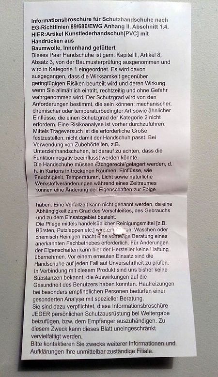 Um dies alles verständlicher für die Leserschaft der nnz zu machen, hat er sich den "Beipackzettel" der zwei Euro teuren Handschuhe genauer durchgelesen: