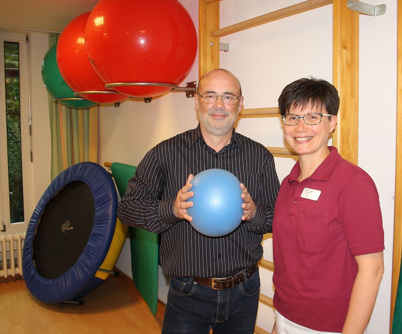 Physiotherapieleiterin Sandra Holberg-Busch (re.) und Andreas Grabe arbeiteten über acht Monate zusammen an der Wiederherstellung seiner Nervenstränge.
