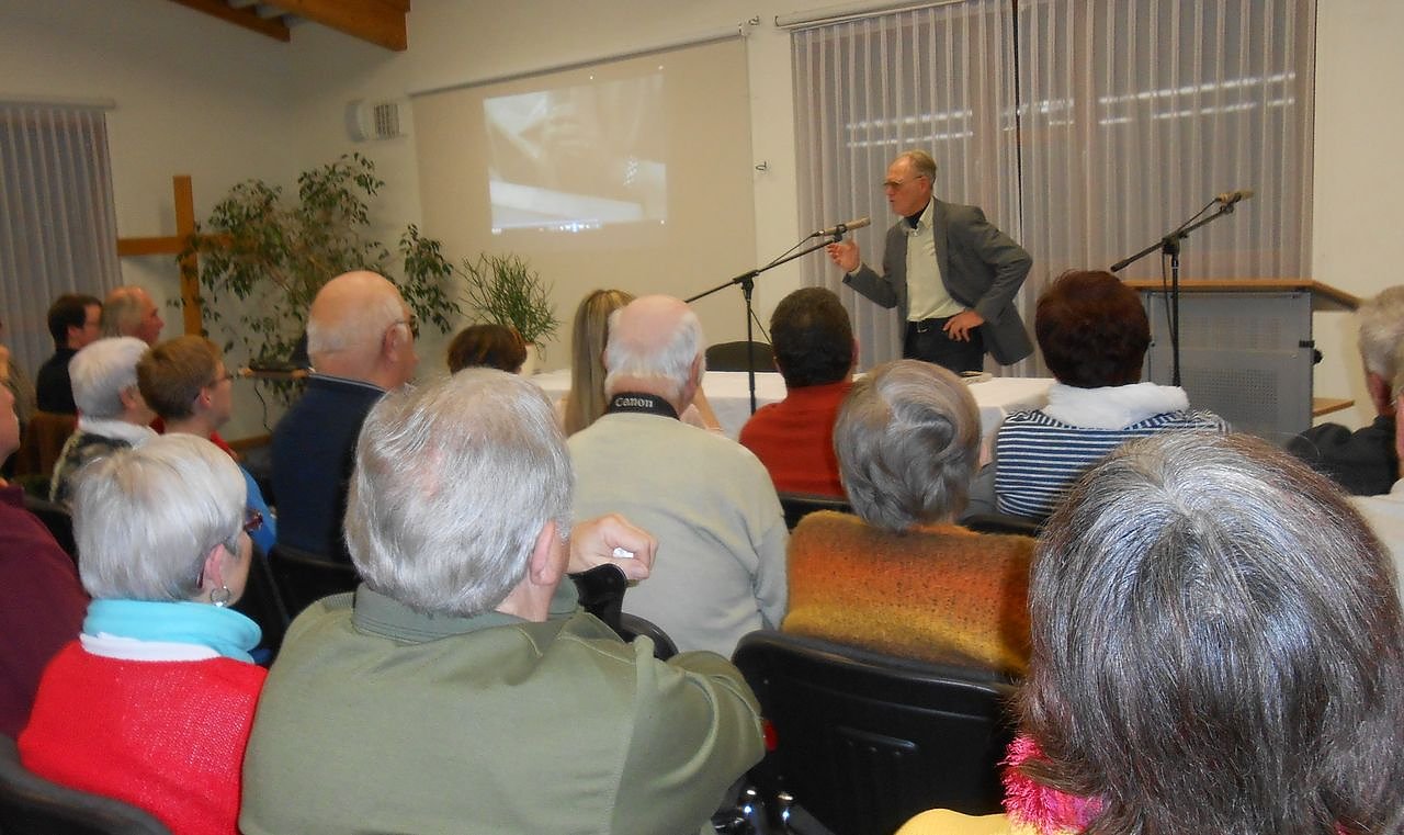 Der Vater von vier Kindern entpuppte sich, nur von einer kurzen Verzehrpause unterbrochen, durchweg am Rednerpult stehend, wie nicht anders zu erwarten, als ein bestens gelaunter Redner! In der über zwei Stunden andauernden Frage/Antwort-Runde mit eingestreuten Erlebnissen aus seiner nicht ganz einfacher Kinder- und Jugendzeit sowie seinem Buch, sparte der fitnesserfahrene Rentner nicht mit Hinweisen an die staunende Zuhörerschaft, wie man richtigerweise unseren Körper bewegen sollte, damit möglichst die bekannten zu erwartenden Wehwehchen noch etwas hinausgeschoben werden können......
