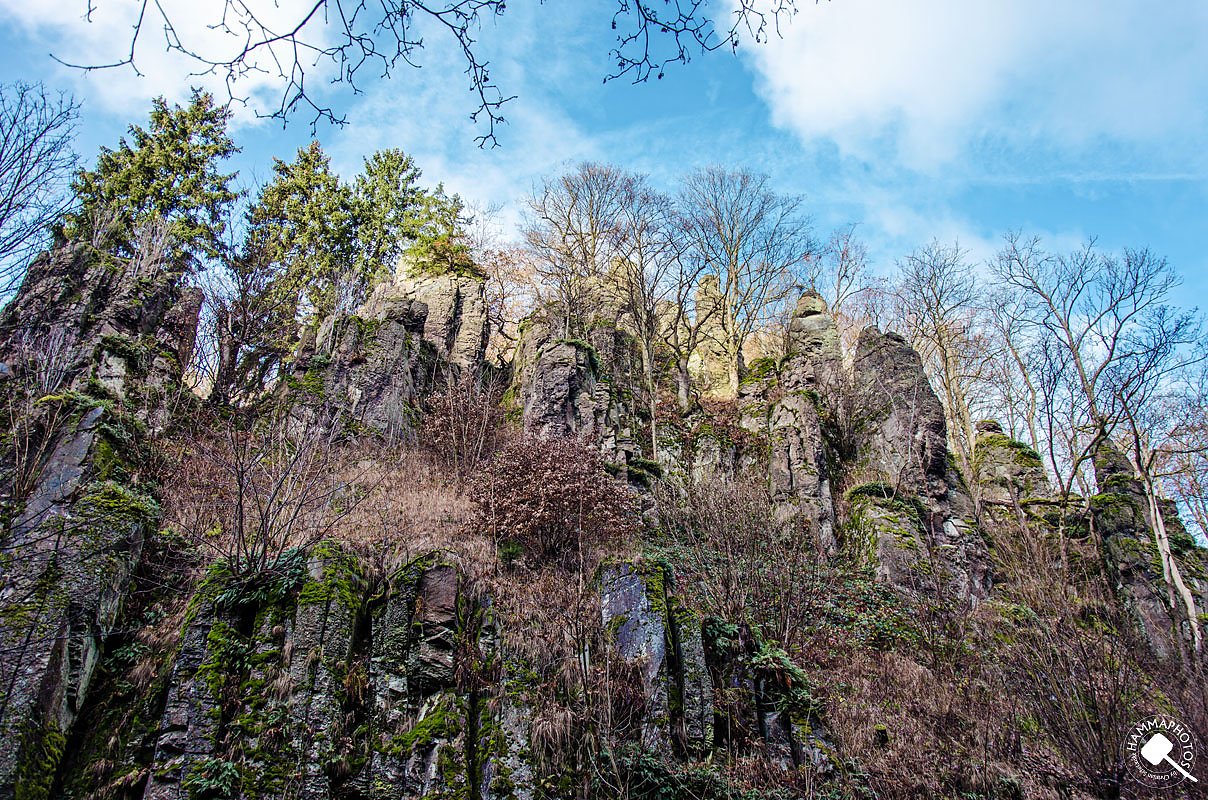 In dieser Säge- und Mahlmühle wurden unter anderem auch Steine bearbeitet. Zu etwas besonderem machen dieses Tal die Felsformationen links und rechts des Weges und da wir uns im südlichen Teil des Harzes befinden, gibt es selbstredend auch eine Sage dazu. Vor allem Gold aus einem Brunnen spielt hier eine große Rolle. Wer mehr darüber erfahren möchte, der kann dies hier tun und sich schon mal einige fotografische Eindrücke verschaffen.