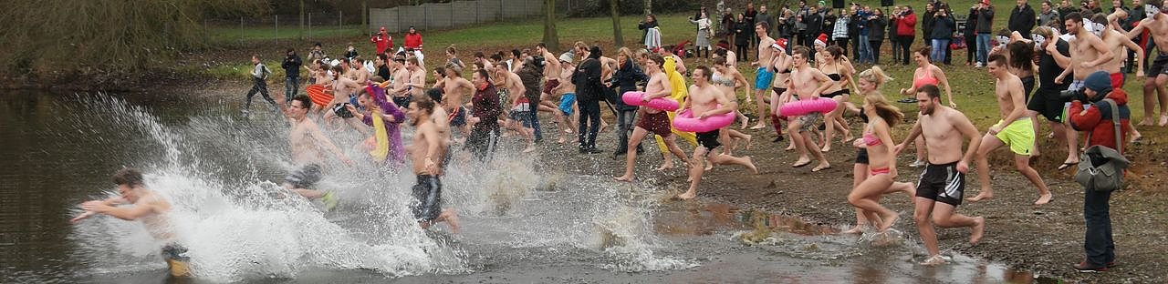 Meist funktioniert das nach diesem Ablauf: reinrennen, laut schreien, rausrennen. Einige Mutige, darunter auch Professoren, verharren wenige Sekunden länger im See. Dann geht es raus. Endlich. Handtuch schnappen, schnell noch ein Selfie, rubbeln und ab an den Glühweinstand.