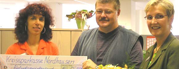 Mit einem 5 €-Monatslos unterstützt der Losinhaber nicht nur soziale und kulturelle Einrichtungen und Institutionen im Landkreis Nordhausen, sondern sichert sich auch die Chance auf attraktive Gewinne. Über den Hauptgewinn von 25.000 Euro freute sind besonders Frank Heise. Filialleiterin Ute Müller und Mitarbeiterin Andrea Ludwig überbrachten die frohe Botschaft.