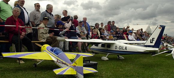 Zur siebten Flugschau lud der Südharzer Modellflugverein auf die eigenen Landebahnen nach Hain. Vor allem Jungen und Männer jeden Alters haben ihren Spaß an den ferngesteuerten Modellen. Rund 2000 Gäste erwarten die Organisatoren. Hobby-Piloten kommen aus Sachsen, Brandenburg, Niedersachsen und natürlich aus Thüringen. Wie viele Flugmodelle die 50 bis 60 Starter dabei haben, wußte selbst Thomas Kunze als Mitorganisator nicht genau.