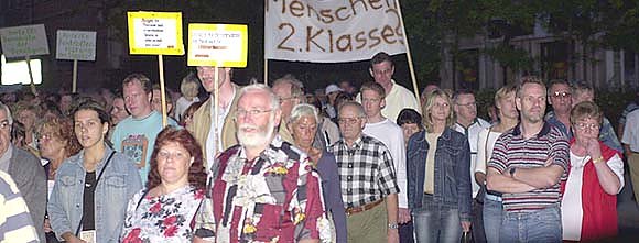 Eine Frau meinte, dass die Politik in Berlin und Erfurt endlich dafür sorgen müsste, dass es mehr Geld für die Bildung und Erziehung der Kinder und Jugendlichen geben müsste. Die Facetten des Protestes werden vielfältiger. Und es scheint so, als wenn nicht nur in Nordhausen Hartz IV, das es im Sprachgebrauch der SPD ja nicht mehr gibt, ein Stein des Anstoßes ist. Der Frust sitzt tief bei den Menschen, die im Anschluß an die Kundgebung in einem Protestzug friedlich durch Nordhausen marschierten.