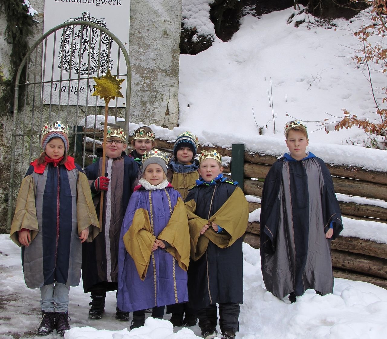 Gestern stapften Mädchen und Jungen zum Dreikönigssingen durch tiefen Schnee zum Kupferschieferschaubergwerk Lange Wand. Die festlich gekleideten Sternensinger brachten den Bergleuten, den Mitgliedern der Bergwerk -und Wanderführergruppe, allen Gästen und künftigen Besuchern dieser einzigartigen, historischen Untertagewelt ihren Segen.