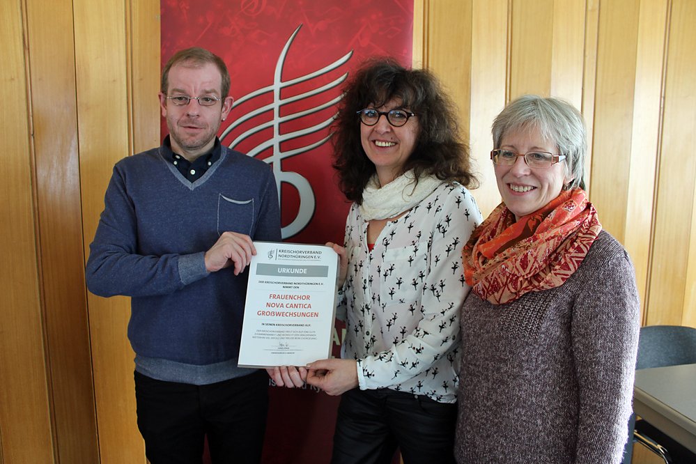 An den Frauenchor "Nova Cantatica" aus Großwechsungen übergab er die Eintrittsurkunde für das 22. Mitglied des Kreischorverbandes Nordthüringen.