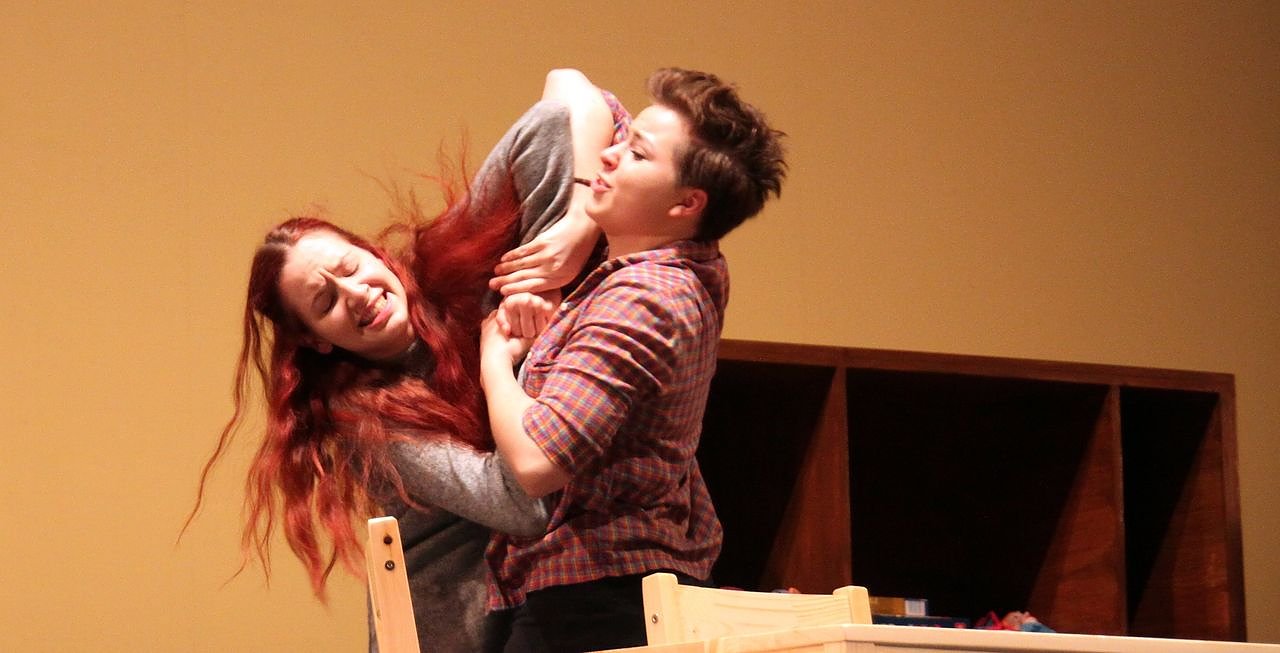 Beim Stückwerk zeigten die Jugendlichen (hier von links): Alina Ruß, Kaja Hesse) erste Ausschnitte aus … und drin bist du