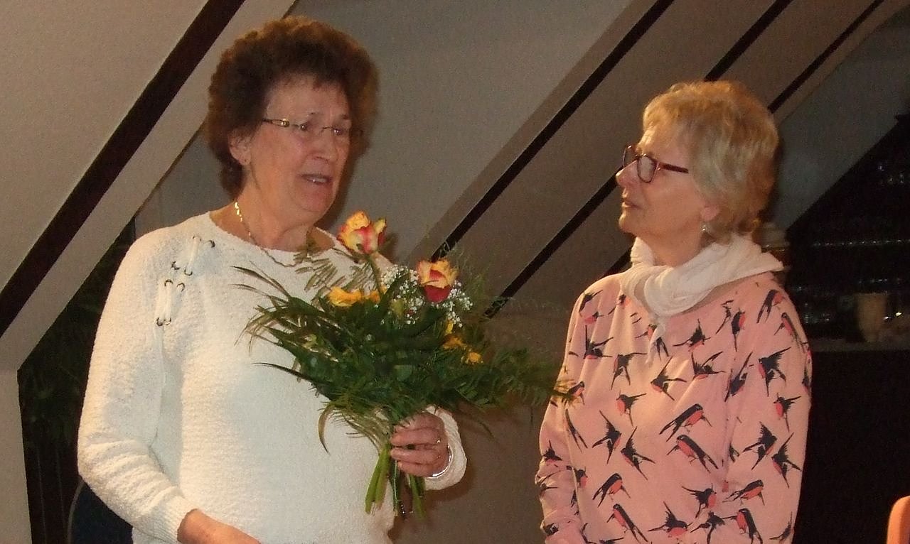 Im Laufe der Versammlung bedankten sich die Mitglieder des Vereines bei Helga Ibe für ihre langjährige Tätigkeit mit einem Blumenstrauß. Frau Ibe war 1992 ein Gründungsmitglied des Vereins und hat all die Jahre aktiv im Vorstand mitgearbeitet. Aus Altersgründen scheidet sie nun aus dem Vorstand aus. Ihre Enkelin Katharina König wurde als neues Mitglied aufgenommen und setzt damit die Familientradition fort.