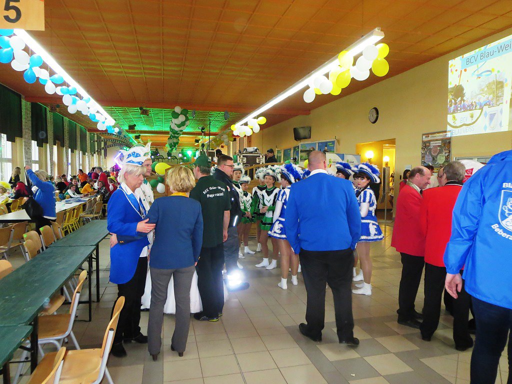 Mit einer bunten Auswahl aus Gesang, Büttenreden, Sketchen und Tanzdarbietungen boten die Narren von Gelb-Weiß, Blau-Weiß und Grün-Weiß ein abwechslungsreiches Angebot aus den eigenen Karnevalssitzungen. So verging die Zeit wie im Fluge. Nach dem Programmende gegen 21:30 Uhr konnten dann noch alle bei Live-Musik das Tanzbein schwingen.