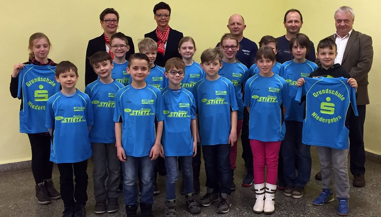 Voller Stolz haben Schüler der 3. und 4. Klasse der Grundschule Niedergebra am Mittwoch die neuen Sporttrikots in Empfang genommen...