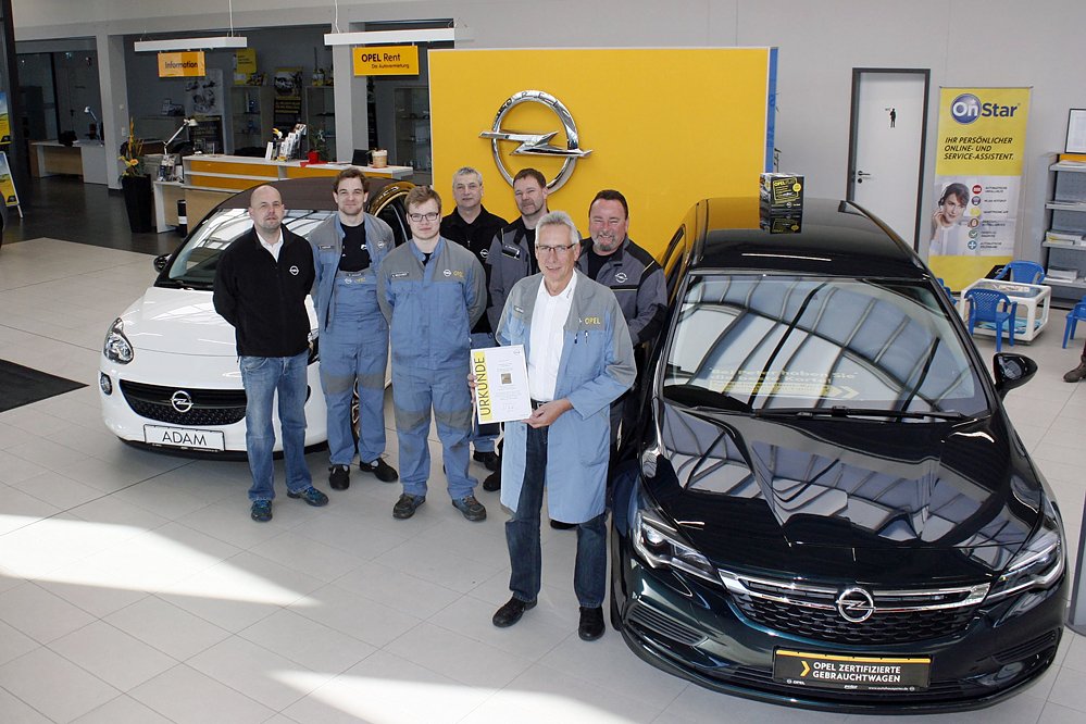 Seit 2. März dokumentiert die Urkunde top 101% Werkstatttest 2016" dem Team der Automobile Peter GmbH sehr gute Leistungen und Servicequalität. Für Ihr Engagement bei der Kundenbetreuung sprechen wir Ihnen Dank und Anerkennung aus. Sie haben für eine starke Kundenbindung gesorgt und die Markenwerte von Opel erfolgreich nach außen getragen, heißt es auf der Urkunde der Adam Opel AG, die Ralf Arendt, Distriktleiter Service, an Volkmar Becker und seine Mannschaft übergab.