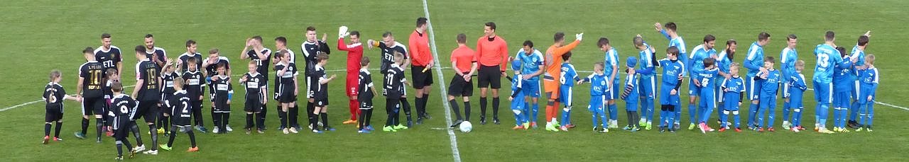 1. Minute: Es geht los, Anstoß hat Lok Leipzig. Sie spielen in Schwarz, Wacker in Blau.