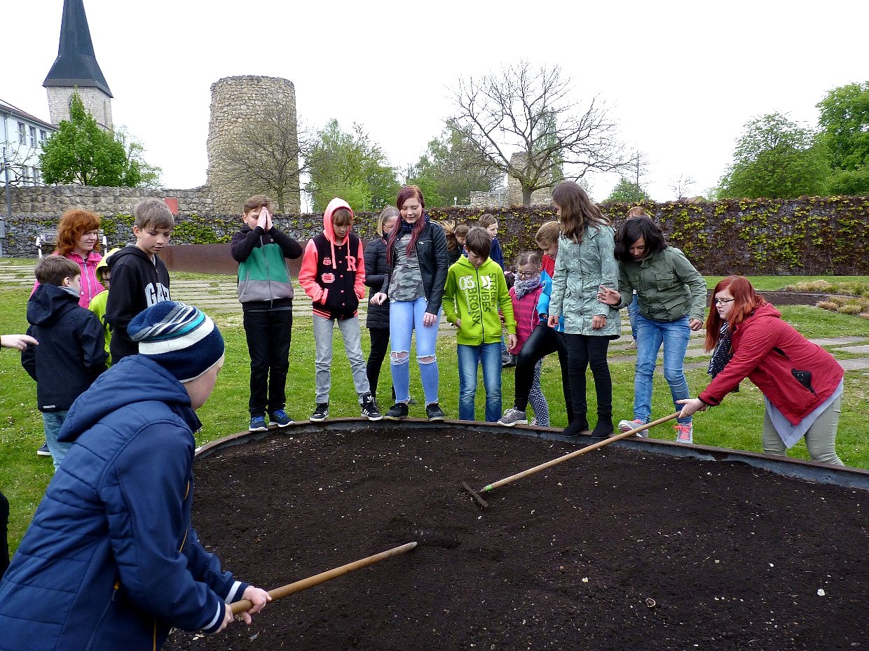 In einigen Wochen sollen dann Feldblumenmischungen, Bunter Saum und Wärmeliebender Saum alle Besucher des Petersberges erfreuen. Beide Schulklassen wollen den Stadtgärtnern auch zukünftig bei der Pflege der Beete helfen und übernehmen deshalb eine Patenschaft für ihre Gartenparzellen.