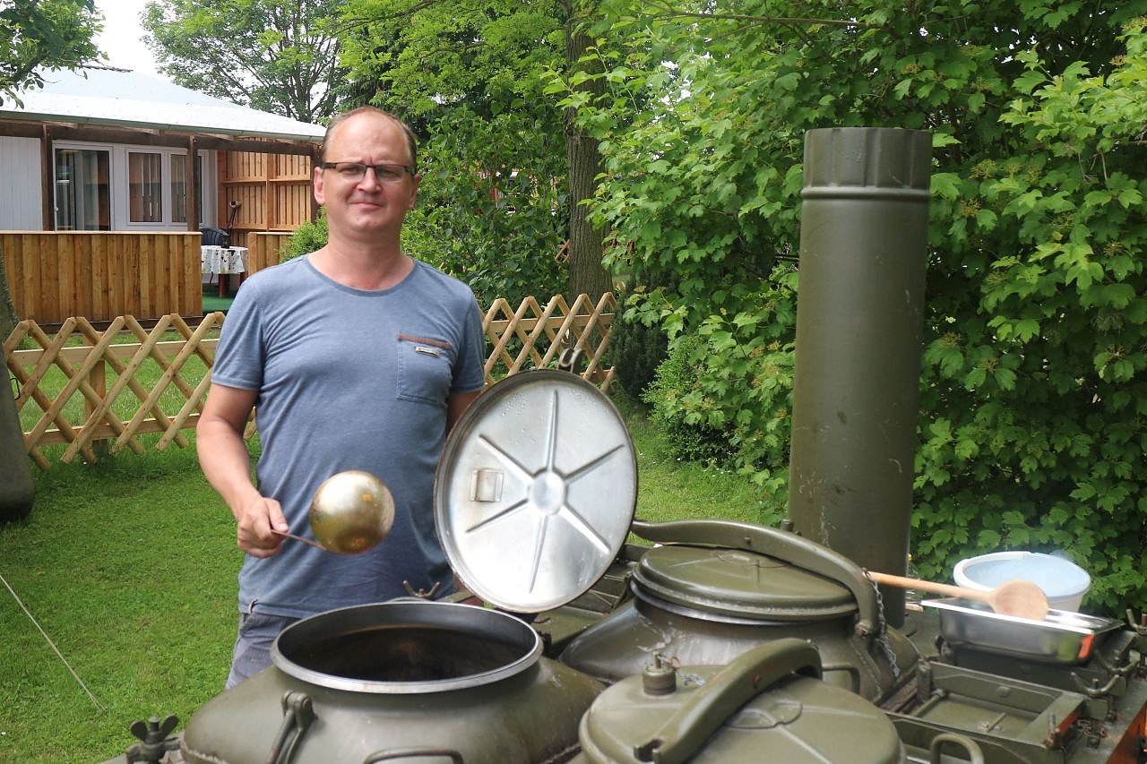 Mit Aktionen wie dem "Ossi-Campen" soll den Gästen auch etwas geboten werden. Heute gab es neben alten Fahrzeugen auch zeitgenössisch passendes Essen aus der Feldküche, Live-Musik am Abend, Nippes aus DDR-Zeiten und natürlich alte Fahrzeuge, darunter auch ausgefalleneres wie ein sowjetischer KrAZ-Lkw. Morgen will man vielleicht auch eine Ausfahrt mit den alten Fahrzeugen wagen, man wird sehen. Niemand muss mitmachen, viele helfen trotzdem. "Ich möchte mich ganz besonders bei unseren Dauercampern bedanken. Sie haben wunderbar mitgemacht und beim Essen und der Getränkeausgabe geholfen. Es ist schön zu sehen das sich der Platz wieder belebt und wir wieder eine Gemeinschaft haben", so Nucke.