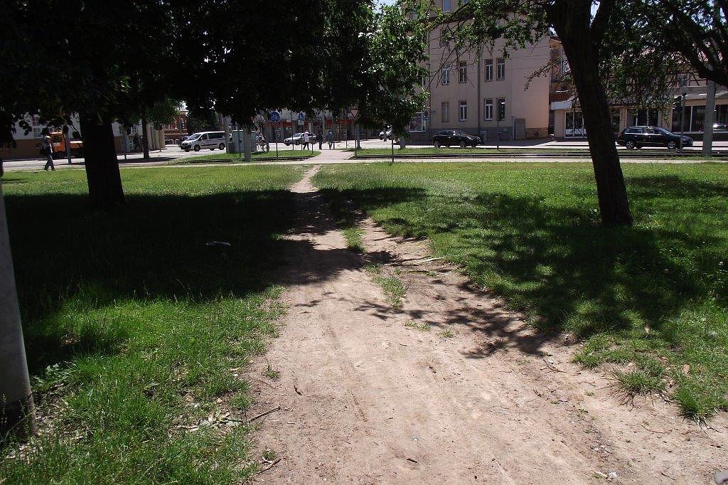 Wie eine Anfrage beim Bauhof ergab, liege bislang kein Auftrag vor, den Trampelpfad anzugehen. Man kenne ihn. Unbürokratisch ließe sich dieses kleine Übel in der Stadt aus der Welt schaffen. Steffen Meyer, Sachgebietsleiter Umwelt und Grünordnung, möchte schnell und viel tun, dem stände andererseits die Haushaltskonsolidierung gegenüber. Eine geeignete Lösung sei aber schon gefunden: Erdreich planieren, Pfad mit Bordsteinen einfassen, Wasserdecke aufbringen. Bis Jahresende soll es geschafft sein. Wir bleiben am Ball