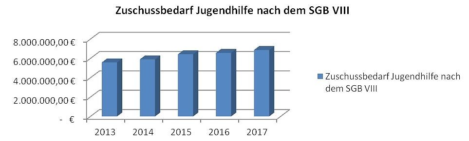 Der Zuschussbedarf in der Jugendhilfe nach dem SGB VIII ist in den zurückliegenden fünf Jahren um 1,3 Mio. bzw. 23 % angestiegen, insbesondere bei den Hilfen zur Erziehung und der Eingliederungshilfe.