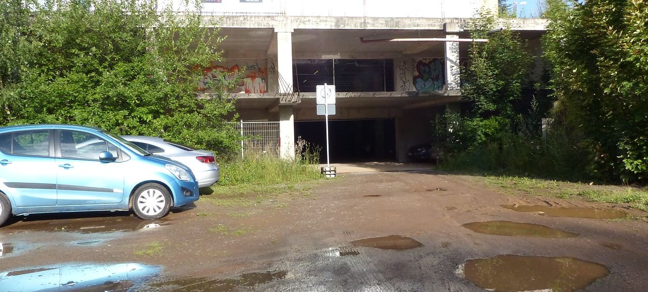 Viele der Gruben-Parker wählen einen cleveren Weg in die Grube. Sie fahren durch das benachbarte Parkhaus, ziehen an der Einfahrt ein Ticket, die Schranke öffnet sich und verlassen nach dem Parken die Grube durch die Schotterauffahrt. Laut der Stadtverwaltung gibt es aber auch bei der Ausfahrt aus der offenen Tiefgarage scharfe Metallspitzen durch frühere Sicherungsmaßnahmen.