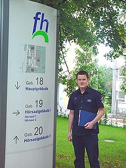 Ronny Peter stammt aus Werther und hat 2000 an der FH sein Studium der Technischen Informatik aufgenommen. Ein Studienziel, das für ihn bereits früh feststand, denn seit seiner Schülerzeit hat er sich mit Computertechnik und Informatik beschäftigt. Nicht ungewöhnlich für einen jungen Mann, aber die Berufswahl wird noch klarer, wenn man weiß, dass er dieses Faible praktisch in die Wiege gelegt bekam, da sein Vater die Firma Internet & Software Peter in Werther betreibt. Für ihn war deshalb der neu eingerichtete Studiengang Technische Informatik ideal, denn so konnte er sein Wunschstudium absolvieren und gleichzeitig weiterhin in der Firma seines Vaters mithelfen.