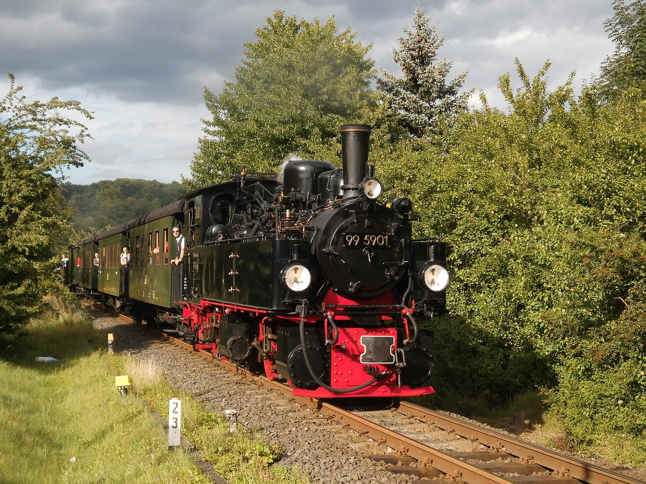 Der Zug wird gefahren von der 120 Jahre alten Malletlokomotive 99 5901 (ex NWE 11).
