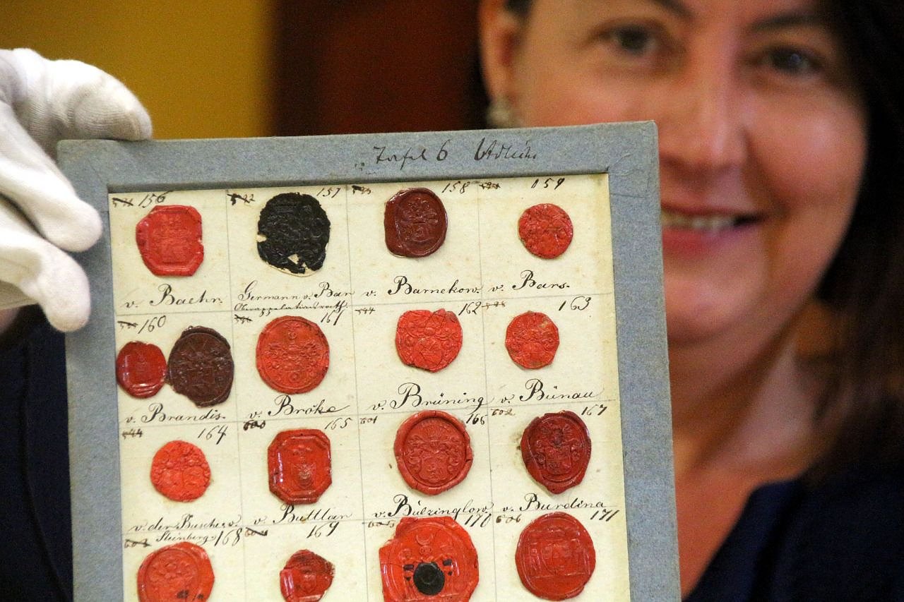 Der Wert der Sammlung liegt in der Vielfalt - Susanne Hinsching mit historischen Siegeln (Foto: Patrick Grabe, Pressestelle Stadt Nordhausen)