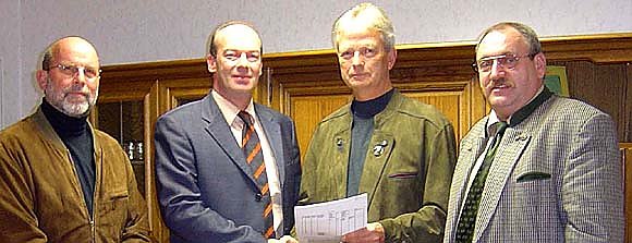 In enger Zusammenarbeit mit der Gemeinde Neustadt und dem Neustädter Kur- und Fremdenverkehrsverein, die dieses Agenda 21-Projekt finanziell mit unterstützen, will der Harzklubzweigverein Neustadt/Osterode e. V. im staatlich anerkannten Luftkurort Neustadt einen Naturlehrpfad errichten. Große Freude herrschte Anfang dieser Woche in Neustadt beim Überreichen einer Zuwendung in Höhe von 1.500 Euro aus Überschüssen der Staatslotterie des Freistaats Thüringen durch den CDU-Landtagsabgeordneten Egon Primas und Joachim Claus für das Projekt "Errichtung eines Naturlehrpfades". Der stellv. Vorsitzende des Harzklubzweigvereins, Herbert Liesegang, nahm im Beisein des Bürgermeisters Peter Sieckel freudig die zweckgebundene Förderung entgegen.