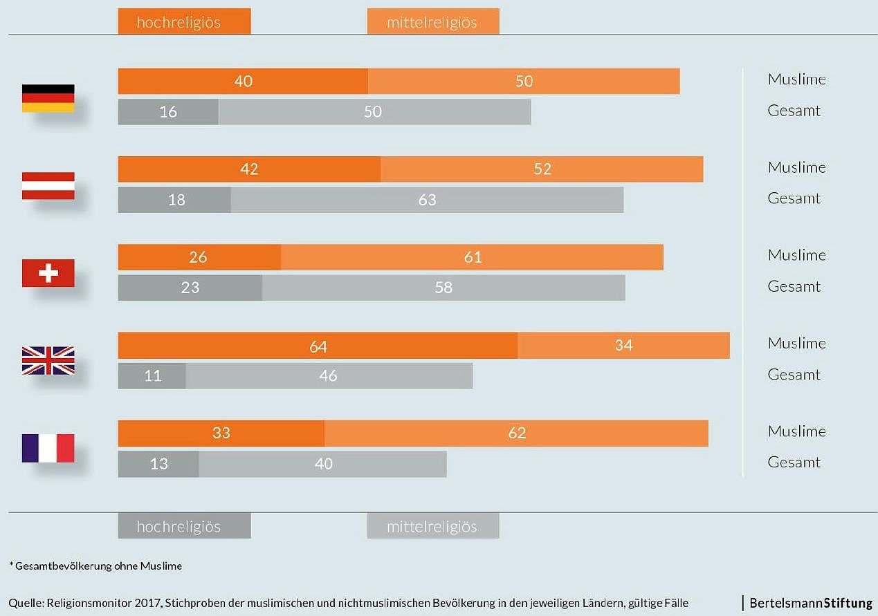 Religiosität in fünf europäischen Ländern - Muslime im Vergleich zur Gesamtbevölkerung (Foto: Bertelsmann Stfitung)