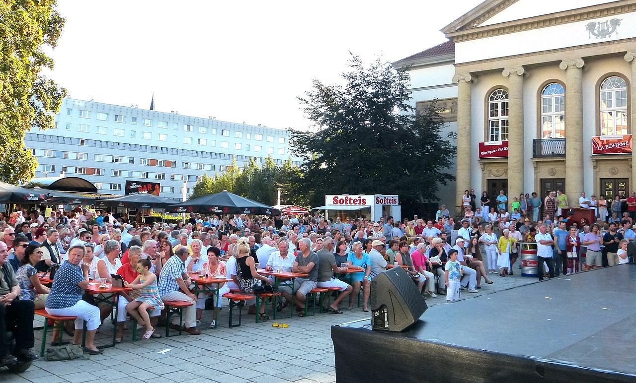 Um 15 Uhr beginnt das Fest mit dem Eröffnungskonzert auf der Bühne vor dem Theater. Unter der Leitung von Generalmusikdirektor Michael Helmrath stimmt das Loh-Orchester Sondershausen gemeinsam mit Brigitte Roth, Marvin Scott und Manos Kia auf das Theaterfest ein.