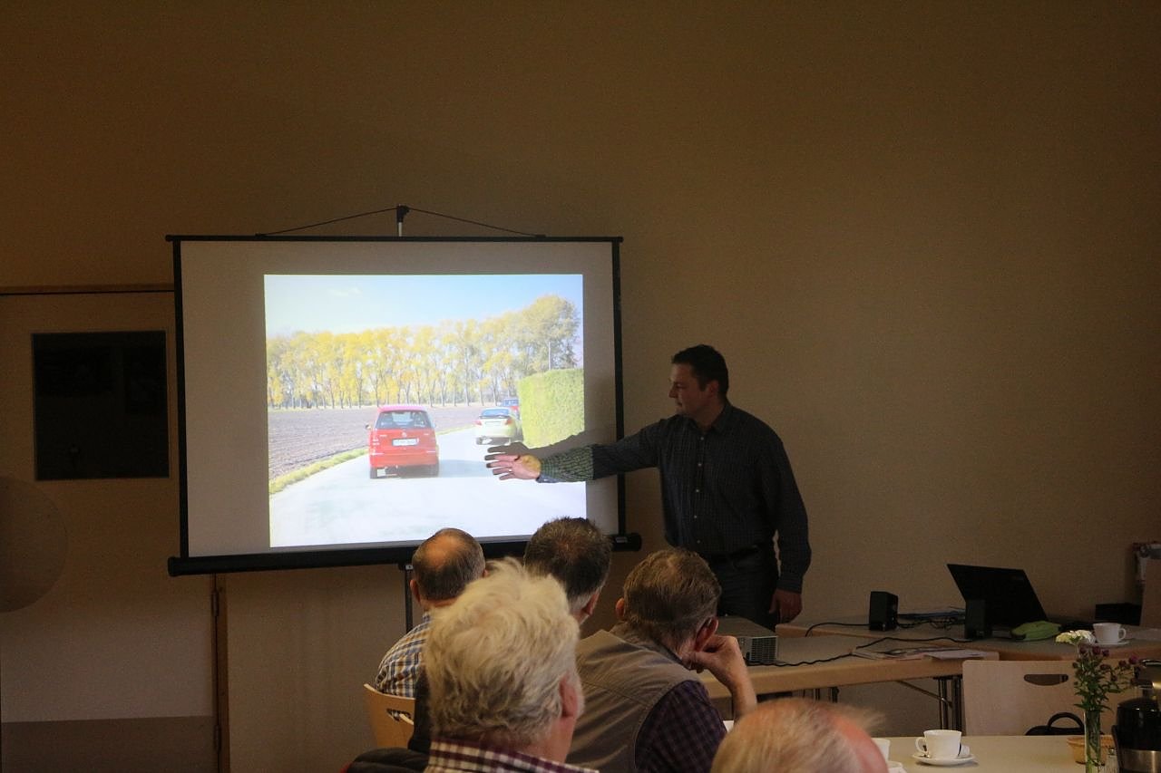 Zu Gast war heute Fahrlehrer Marcus Domann, tätig auch für die Kreisverkehrswacht. Er war gekommen um mit den Damen und Herren Senioren über Auto, Verkehr und Fußgänger zu sprechen.