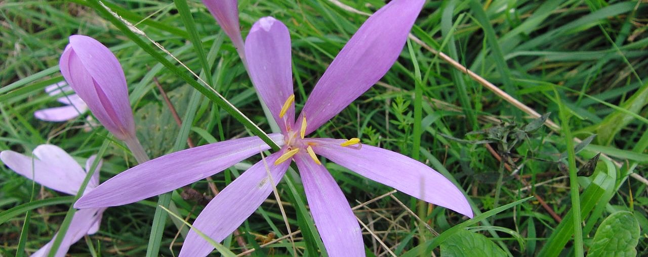 Die Pflanze mit dem poetischen Namen Herbst-Zeitlose fällt aber nicht nur durch ihre späte Blütezeit bis Oktober und ihre enorme Giftigkeit aus dem Rahmen. Auch die Tatsache, dass sich die Blüte vor den schmalen, leicht rinnigen Blättern aus dem Boden schiebt und die im laufenden Jahr frisch in der sehr tief liegenden Knolle gespeicherten Nährstoffe anzapft, ist eine Besonderheit.
