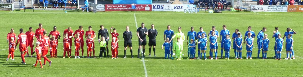 Jetzt sind die Mannschaften auf dem Platz.