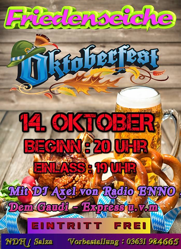 Vielerorts wird und wurde bereits das größte Volksfest eröffnet. Auch die Friedenseiche in Nordhausen lädt am kommenden Samstag den 14. Oktober zum Volksfest ein.