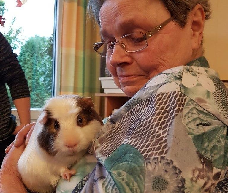 Meerschweinchen sind bestens für die therapeutische Begleitung von Senioren in Pflegeheimen geeignet. Sie registrieren, durch Ihre Feinfühligkeit, ob ein Bewohner traurig ist oder guter Dinge...