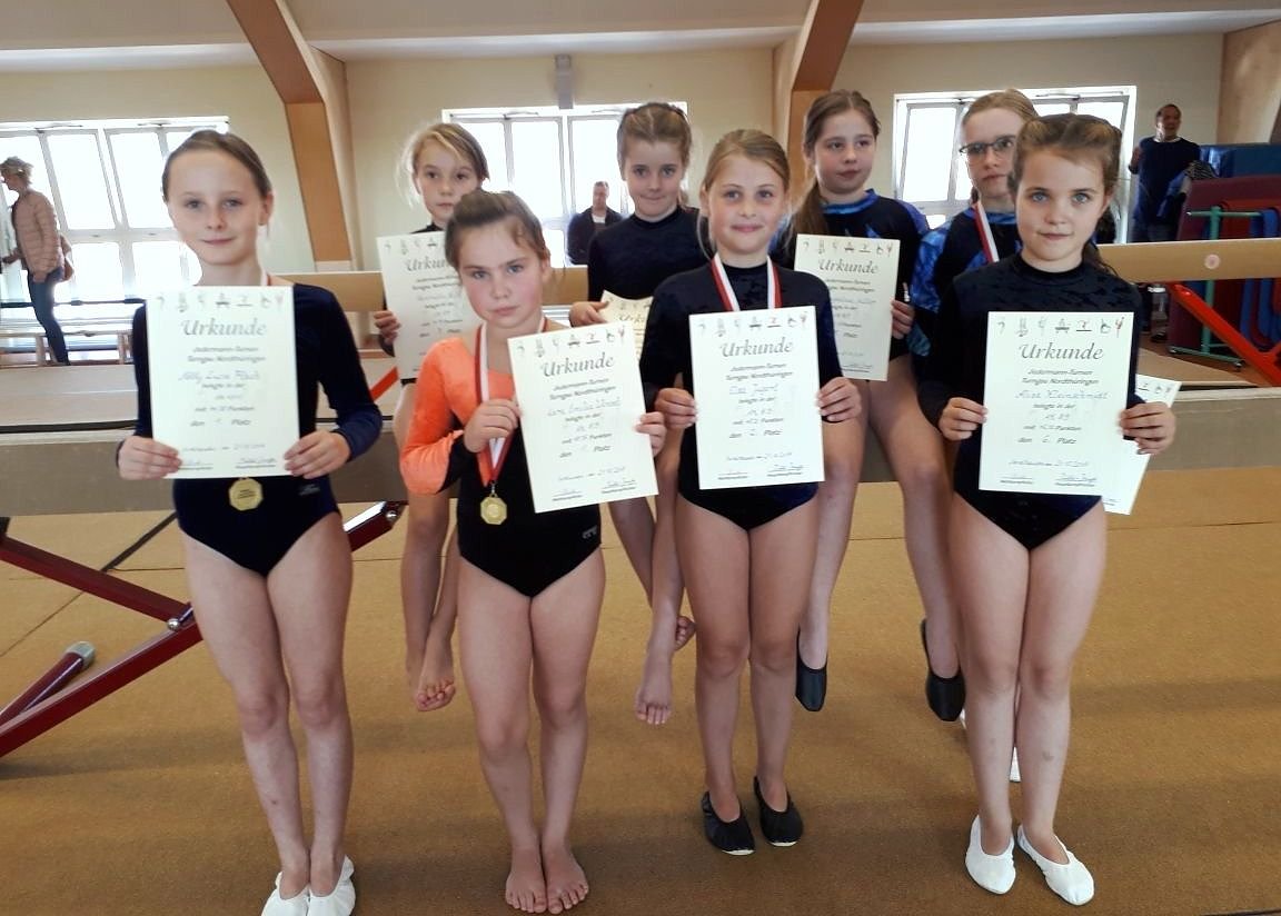Mit 45,25 Punkten holte sich Lara Wenzel die Goldmedaille vor Elsa Jugert mit 45,20 Punkten, die sich damit die Silbermedaille sicherte (beide TSV Nordhausen). Den dritten Platz belegte Helena Scheffler aus Artern. Auch die Turnerinnen des TSV Nordhausen Mia Müller, Aliza Kleinschmidt, Henriette Huke und Frieda-Lotte Reuter zeigten gute Übungen und belegten die nachfolgenden Plätze.