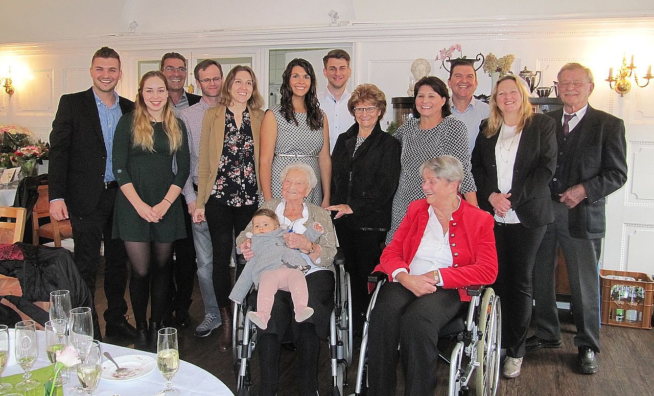 Gestern gab es nun ein großes Ereignis zu feiern. Die lebensbejahende und liebenswerte Dame beging Ihren 100. Geburtstag. Die Familie, die mittlerweile fünf Generationen umfasst, hatte im Saal der Hermann-Arnold-Stiftung eine Feier organisiert.
