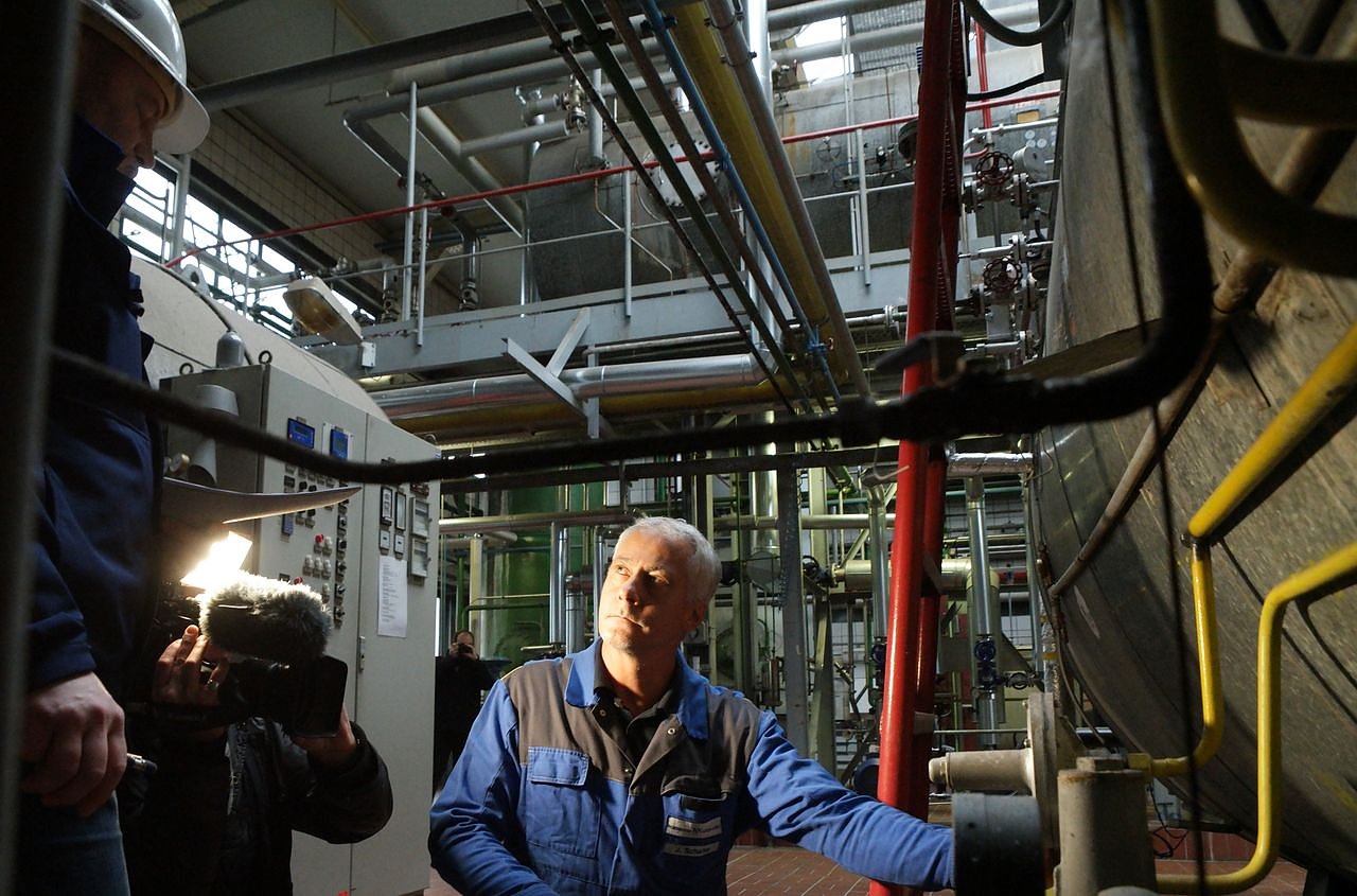 Torsten Strunz, der Sachverständige für Dampf- und Drucktechnik bei TÜV-Thüringen inspizierte sehr genau die einzelnen Parameter, wie hier zum Beispiel bei einem Dampferzeuger. Unterstützt wurde er von Jens Schalke, einem der 15 Kesselwärter des Nordhäuser Unternehmens.