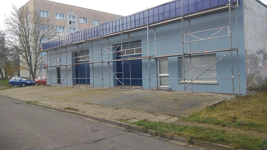 Die Fassade zur Straße gestrichen. Zwei markante Mauerdurchbrüche. Großes Fenster, Türeingang. Ein Arbeiter munkelte was von einer Werkstatt. Für Kraftfahrzeuge? Das wisse er nicht. Von kompetenter Stelle war zu erfahren: