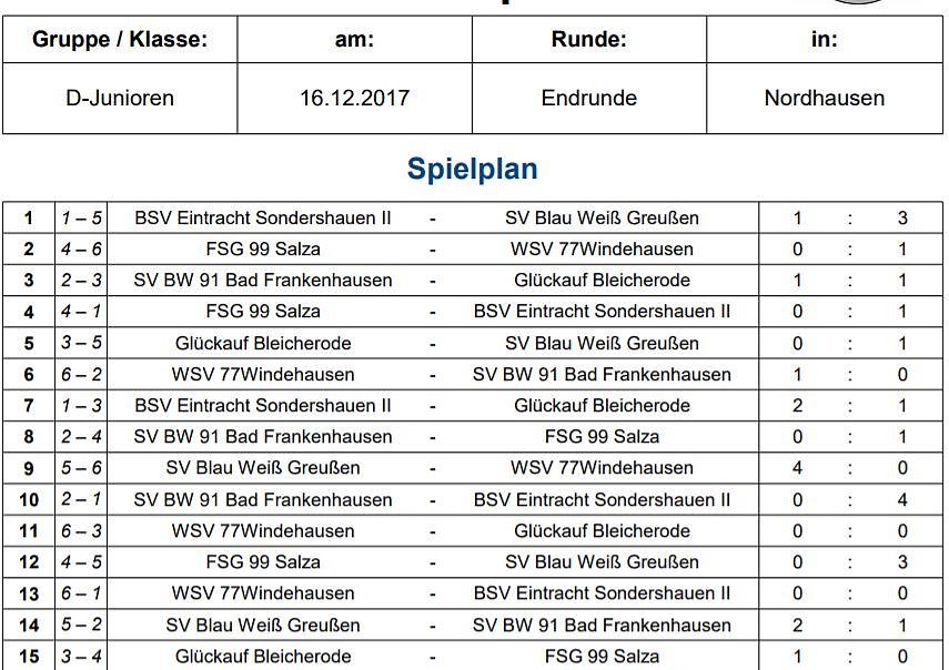 Turnierplan Endrunde D-Junioren