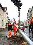 In der Eichendorffstraße brennt heute Abend wieder Licht. Beleuchtung für die Eichendorfsstraße: Im Auftrag der Stadt Nordhausen haben heute Mitarbeiter der Stadtwerke die ersten zwei neuen Straßenlampen aufgestellt. Noch heute Abend, so Bauamtsleiter Jens Kohlhause, werde die Eichendorffstraße wieder beleuchtet sein, nach dem die alten verrosteten Lampen vor einigen Wochen aus Sicherheitsgründen abgebaut werden mussten. In den kommenden Tagen werden noch Anschlüsse für 2 zusätzliche Lampen gelegt, so dass künftig 6 Lampen leuchten werden.