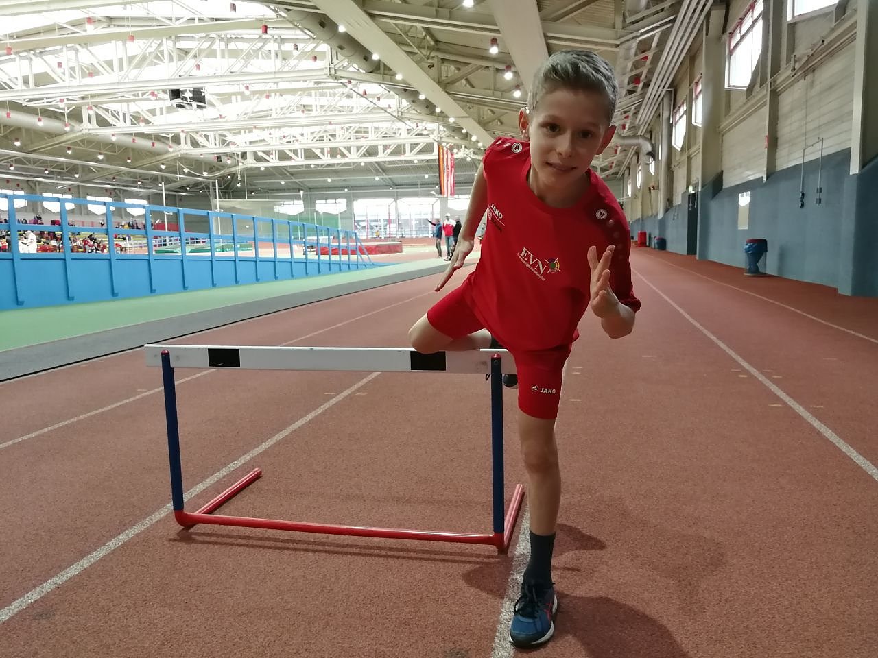 Der Wettkampf startete mit dem 60-Meter-Hürdenlauf. Mit einer Zeit von 11,31 Sekunden stieg Damian gleich mit persönlicher Bestzeit in den Wettkampf ein und war somit schnellster in seiner Altersklasse.