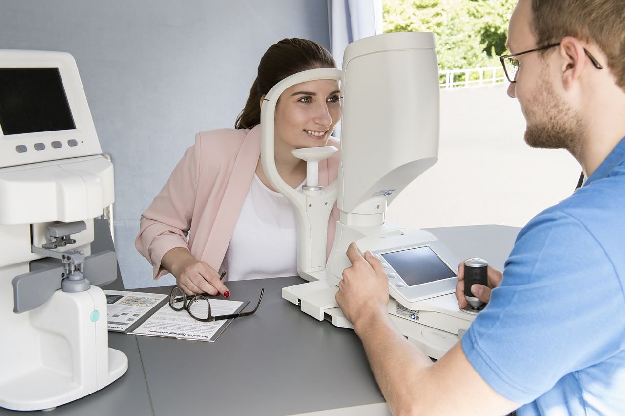 Der mobile Augen-Service beinhaltet auch einen ausführlichen Brillen-Check. Der umfasst Reparatur, Reinigung und Anpassung von mitgebrachten Brillen. Zusätzlich prüfen die Mitarbeiter den UV-Schutz von Sonnenbrillen.